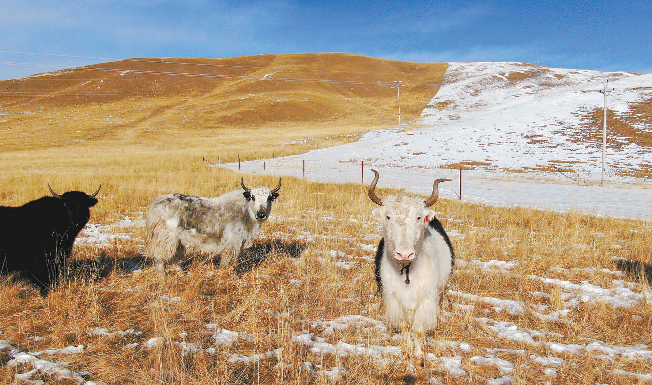 冬日時(shí)節(jié),位于祁連山腹地的青海省海北藏族自治州祁連縣風(fēng)光壯美,雪山、草原、森林、牦牛與羊群組成了別致的冬日美景。