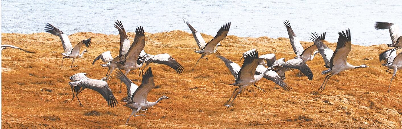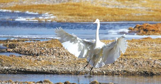 四月中旬的班德湖雪覆冰封,成千上萬只斑頭雁棲息在湖心島嶼,它們用喙銜來草枝、莖葉、干藻、絨羽和碎布,營造御寒的巢穴。江源,是鳥類的故園,凍土之上的酷寒之地,成群的雌雁用自己的體溫孵化雛鳥,它們啾啾的鳴叫回蕩在無際的曠野,這傲立天地間的“驚鴻照影”,不由得我們不為之嘆服!