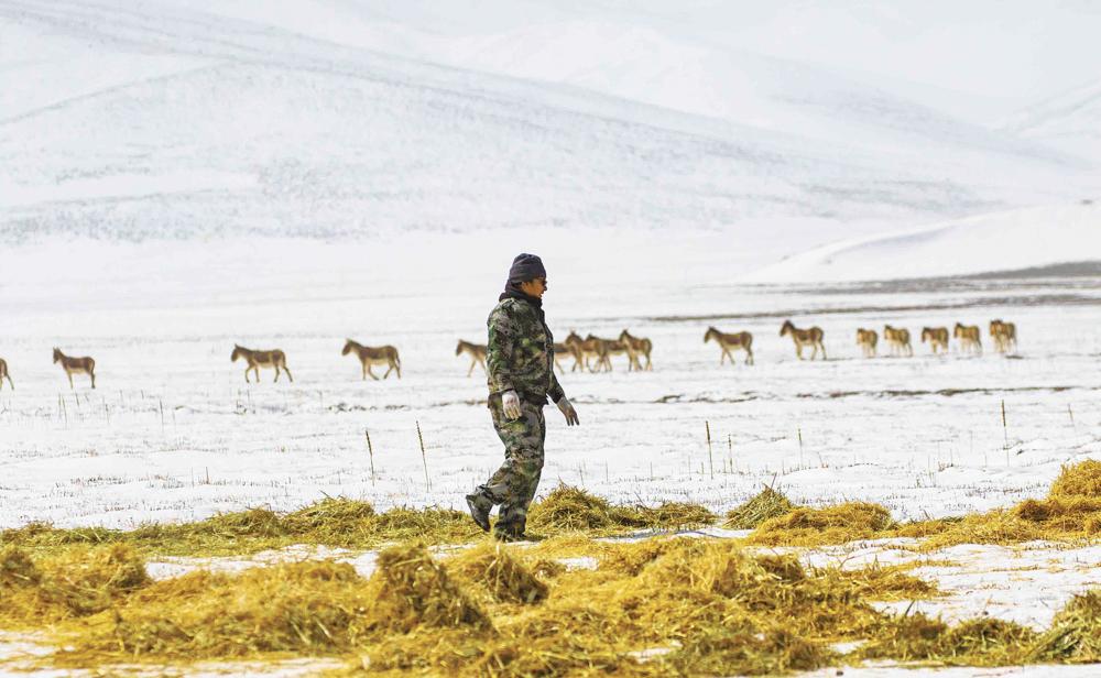 從戴上紅袖章那天開始,他就穿梭在山林、湖畔、河邊,有時撿拾垃圾,有時關(guān)注野生動物的蹤跡,默默守護(hù)這片家鄉(xiāng)的草場、湖泊、高山。在一次巡護(hù)中,切保和隊友們發(fā)現(xiàn)由于季節(jié)的變化,導(dǎo)致黑頸鶴等野生動物的巢穴被淹,給它們的生產(chǎn)棲息帶來了影響。于是,他和其他生態(tài)管護(hù)員為黑頸鶴等野生動物修巢筑窩12個?!安蛔尷廴静輬觥⑽廴緞又参锏乃吹亍笔敲恳晃还茏o(hù)員的共同想法。