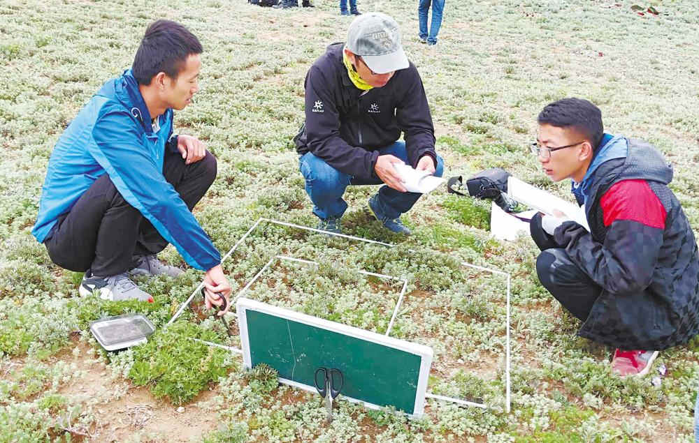 科研人員進(jìn)行植物樣方調(diào)查。