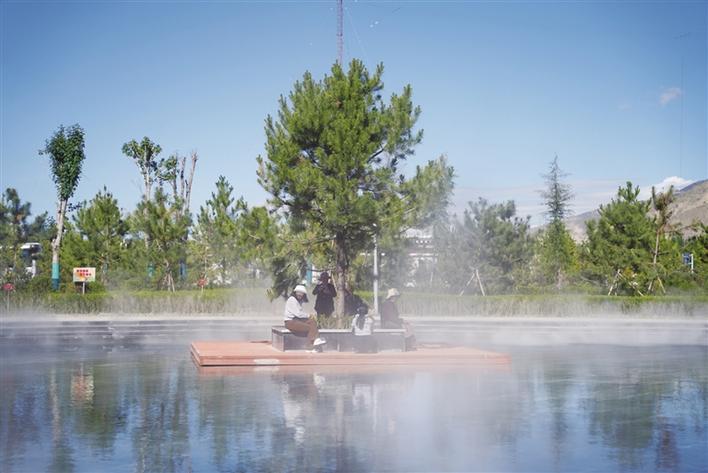 當(dāng)日,公園內(nèi)人來(lái)人往,很是熱鬧。人工湖水清澈見底,景觀橋蜿蜒伸向遠(yuǎn)方,遠(yuǎn)處的青山,與近處的綠水,勾勒出一幅絕美的風(fēng)景圖。老人在湖邊的座椅上休息,孩子跟著父母在公園內(nèi)“打卡”留念,眼前的情景處處彰顯著山南市民如今的幸福生活。