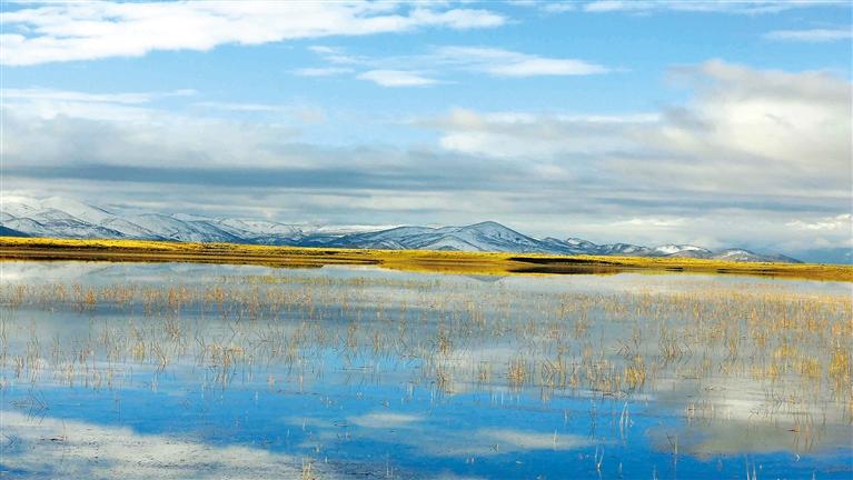 日喀則市仲巴縣帕羊濕地地處雅魯藏布江上游,該地地理景觀獨(dú)特,是集雪山、沙丘湖泊和草地為一體的綜合性自然保護(hù)區(qū),與湛藍(lán)的天空和變幻不定的白云匯集在一起,構(gòu)成了一幅唯美的生態(tài)畫卷。