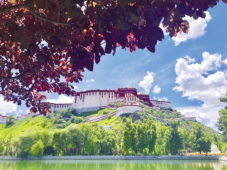 拉薩的夏天有獨特的風(fēng)格和別致的風(fēng)姿。天空藍得自帶“美顏”、白云仿佛“觸手可及”、日光耀眼奪目,還有那與夏天不匹配的溫度。拉薩的“熱”很獨特,站在陽光下有夏天的味道,出汗的時候去往樹蔭乘涼,又有一絲秋天的涼意。