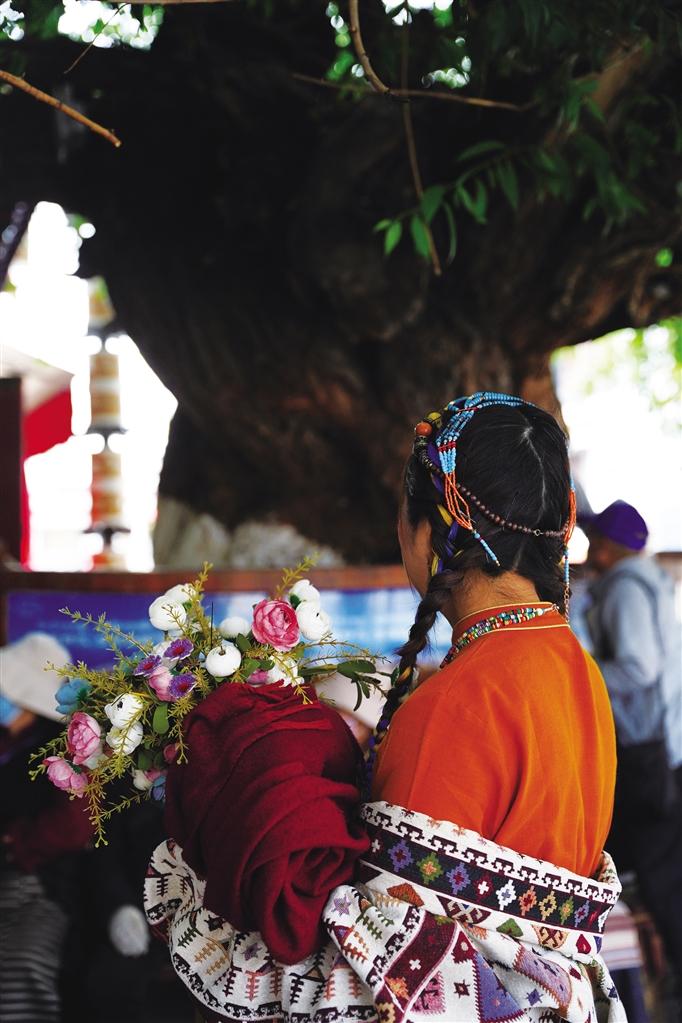 走在熙熙攘攘的八廓街,古樹已經(jīng)枝繁葉茂,陽光很難穿透密集的葉子,只能勉強擠出幾束光,碎落在古樹下乘涼的老人腳下。樹下拍照的游客自成一道風(fēng)景,享受著高原夏日的美好時光。