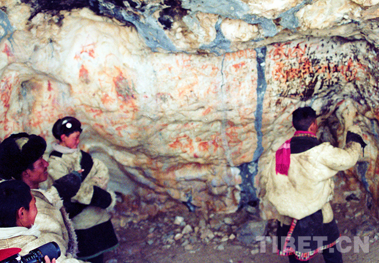 此外,扎西多島還有不少繪制在溶洞壁上的巖畫。扎西多島的兩處洞穴巖畫,洞深均為3米左右,洞壁曾被湖水沖蝕得十分光滑。在這光滑的洞壁上用棕紅色礦物顏色繪制的各種圖像,內(nèi)容及題材十分豐富,有鷹、虎、牦牛、藏羚羊、舞蹈、狩獵征戰(zhàn),枝狀植物、佛塔、日月圖像、宗教符號(hào)等。