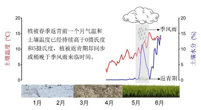 羅天祥指出,本項研究通過在青藏高原中部念青唐古拉山北坡的西藏納木錯高寒湖泊與環(huán)境國家野外科學觀測研究站建立紅外增溫和自動增雨控制實驗平臺,研究團隊對2013-2014年紫花針茅、大花嵩草、釘柱委陵菜3個優(yōu)勢物種返青期與枯黃期物候進行監(jiān)測,并同步記錄氣溫、降水、土壤溫度和土壤水分,解析了增溫2攝氏度、增雨15%和30%對高寒草原-草甸過渡帶優(yōu)勢種物候變化的影響,研究結(jié)果明確顯示,降雨增加導致青藏高原高寒草地植被返青提前、枯黃推遲,而與增溫基本無關(guān)。