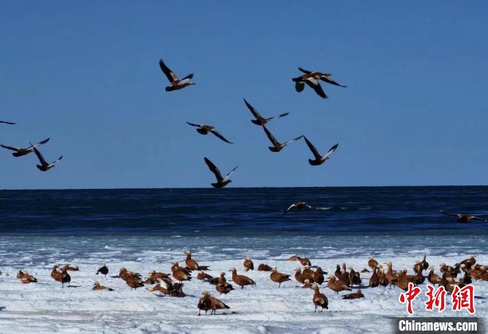 赤麻鴨“定居”青海湖 成為青海湖越冬水鳥(niǎo)絕對(duì)優(yōu)勢(shì)種