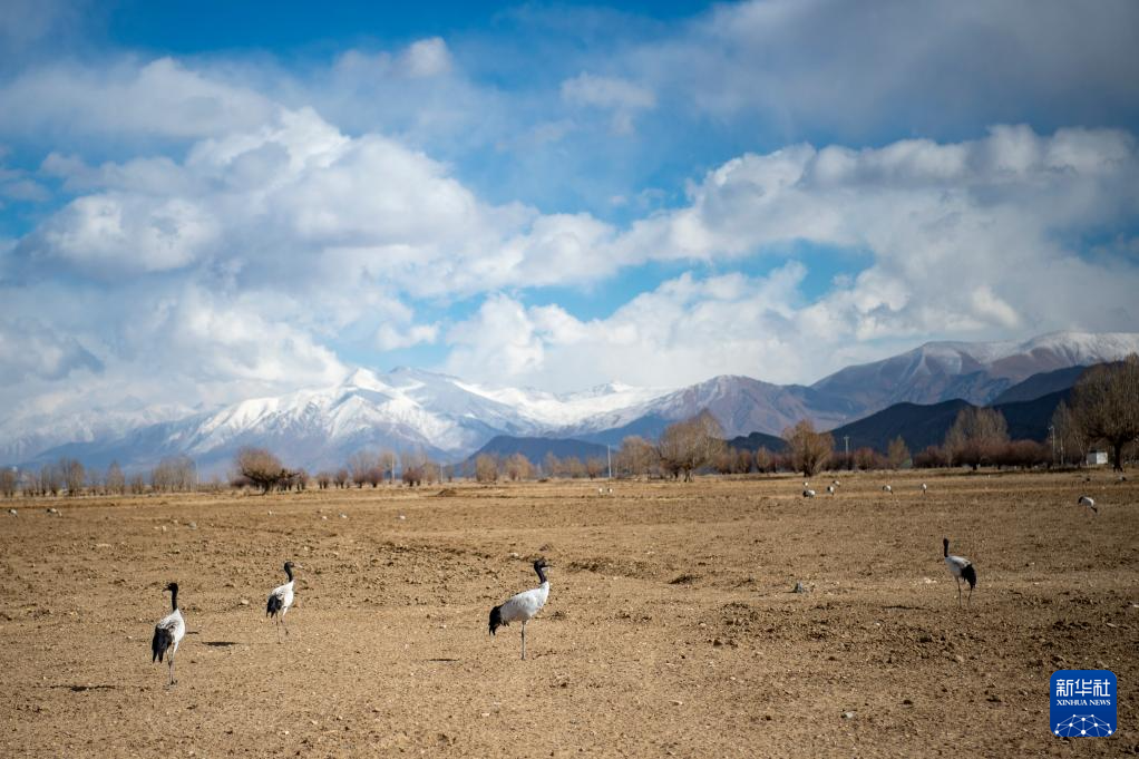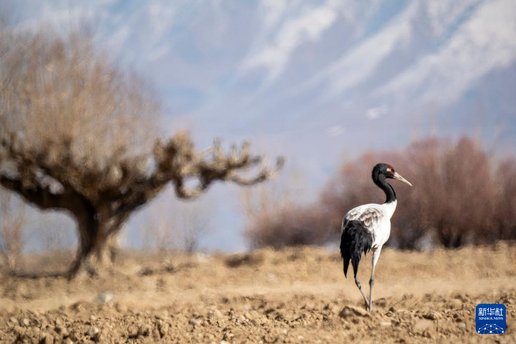 這是1月27日在西藏南木林縣艾瑪鄉(xiāng)田間拍攝到的黑頸鶴。新華社發(fā)(旦增努布攝)