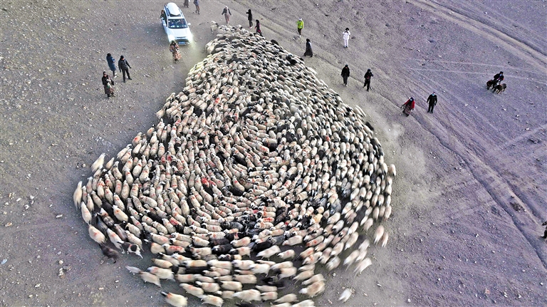 西藏山南市浪卡子縣打隆鎮(zhèn)推瓦村牧羊轉(zhuǎn)場:藍色冰湖上的生命律動