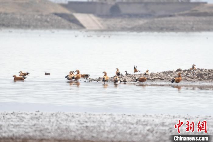 圖為赤麻鴨在林周縣卡孜水庫覓食。貢嘎來松 攝