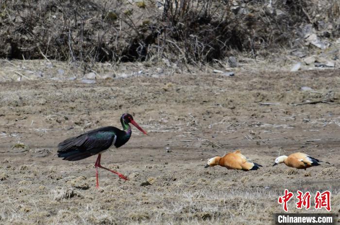 圖為祁連山國(guó)家公園青海片區(qū)管護(hù)員拍攝到的黑鸛。祁連山國(guó)家公園青海省管理局供圖