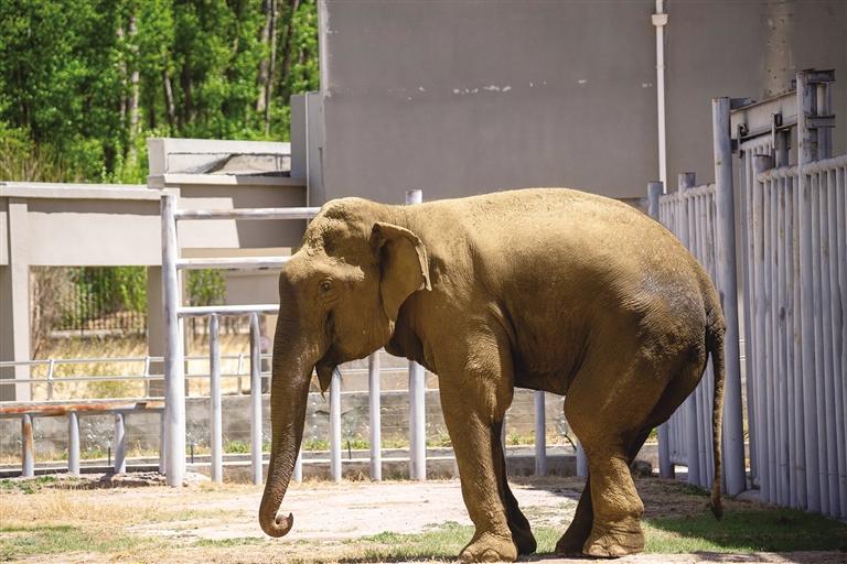 大象館是曲水動物園的“明星場館”?!爸Z羅、諾羅……”聽到飼養(yǎng)員阿尼的呼喚,大象立即調轉身子,朝著阿尼走了過來?!啊Z羅’是泰語,是在呼喊大象?!卑⒛嵴f。