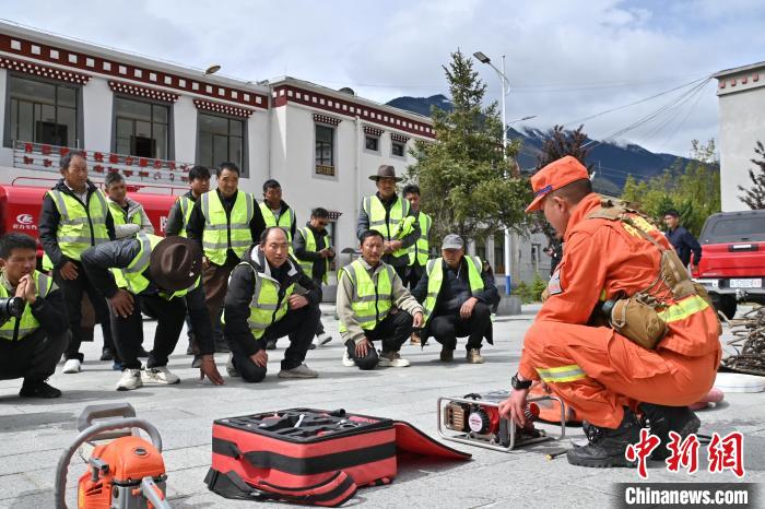 圖為森林消防隊(duì)員正在向護(hù)林員講解裝備知識(shí)。西繞拉翁 攝