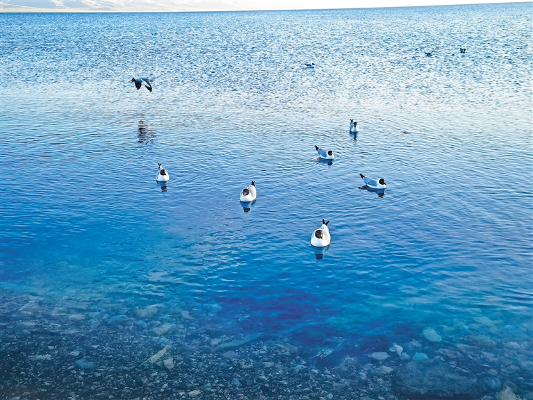 山與水相擁而生,文與旅相融而興。5月18日傍晚,在納木錯,遠(yuǎn)遠(yuǎn)望去,蔚藍(lán)遼闊的湖面與天際連成一線,清澈的湖水與遠(yuǎn)處的念青唐古拉山相互輝映、水天一色,湖水輕柔地拍打岸邊砂石,一群棕頭鷗在消逝的湖面上嬉戲玩鬧,邀請游客共賞這絕美的視覺盛宴。