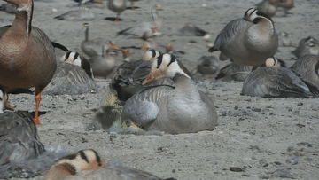雄性斑頭雁守護(hù)在雌性斑頭雁身邊