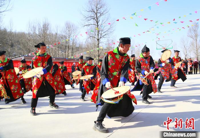 “我們會(huì)在每年春天播種前后,舉行廟會(huì)。會(huì)上由法師打著單面扇形羊皮鼓跳舞,祈求禳災(zāi)避禍,平安吉祥。由于敲鼓時(shí)發(fā)出了‘梆、梆’聲響就稱它為梆梆會(huì)?!卑鸢鹞璺沁z傳承人李占森介紹,梆梆會(huì)是土族民俗祭祀文化保留最為完整的活動(dòng)。