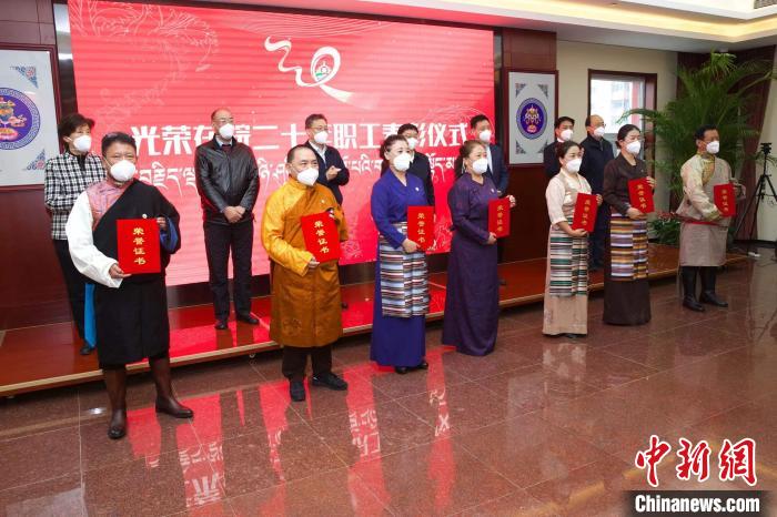 圖為座談會(huì)上為光榮在院工作20周年以上的職工頒發(fā)榮譽(yù)證書?!≈袊?guó)藏學(xué)研究中心供圖