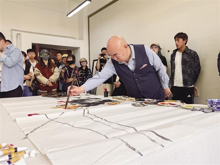 6月5日,由國家藝術(shù)基金支持,北京畫友藝術(shù)交流中心主辦的《意境》唐詩主題畫展在西藏大學藝術(shù)學院成功舉辦。此次主題畫展有賈平西、劉曦林、張松等20余位藝術(shù)家作品參展。中國藝術(shù)研究院文學藝術(shù)院專職畫家、國家一級美術(shù)師林維與南開大學藝術(shù)與美學研究院副院長、博士生導師尹滄海現(xiàn)場揮毫潑墨、即興發(fā)揮,給西藏大學獻上了兩幅圖。