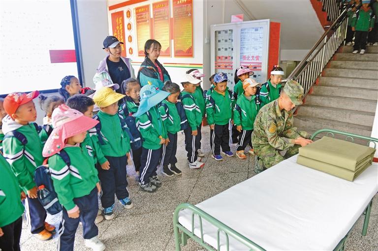軍人為師生演示內(nèi)務(wù)整理。通訊員 張連元 記者 趙文慧 攝