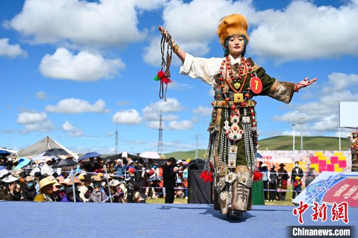 2023年8月,那曲恰青賽馬節(jié)上旅游形象大使比賽?!≈行律缬浾?趙朗 攝