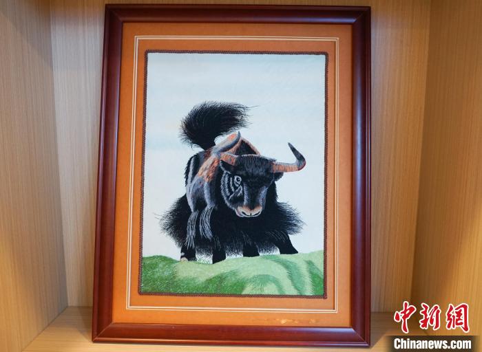 圖為中心內(nèi)展示的湟源皮繡作品。馬銘言攝