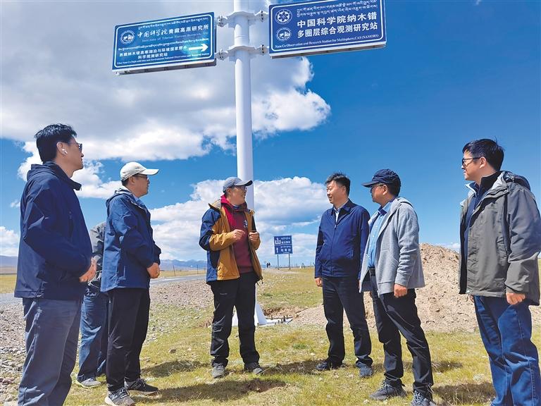 圖為科技部科學普及司工作人員和援藏專家一行,在當雄縣調研中國科學院納木錯多圈層綜合觀測研究站、國家電網公司西藏羊八井高海拔試驗基地。記者 李洲 攝