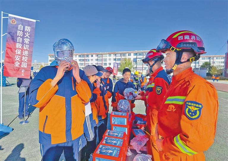 11月5日,2023年日喀則市“119”消防宣傳月活動(dòng)啟動(dòng)儀式在日喀則市第三高級(jí)中學(xué)舉行。日喀則市消防安全委員會(huì)成員單位及師生代表共1500余人參加活動(dòng)?;顒?dòng)中,消防技能挑戰(zhàn)、消防科普互動(dòng)、消防裝備展覽、改革轉(zhuǎn)隸五周年成果展、消防技能展示等,吸引了大批師生近距離體驗(yàn)消防、認(rèn)識(shí)消防,進(jìn)一步筑牢校園消防安全“防火墻”。