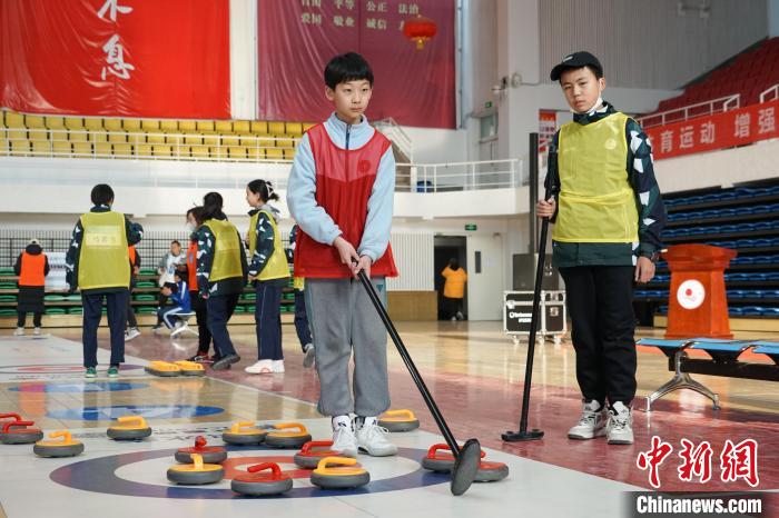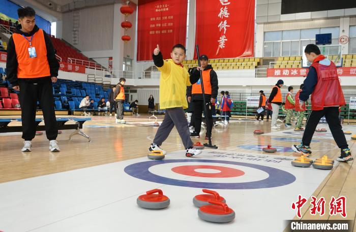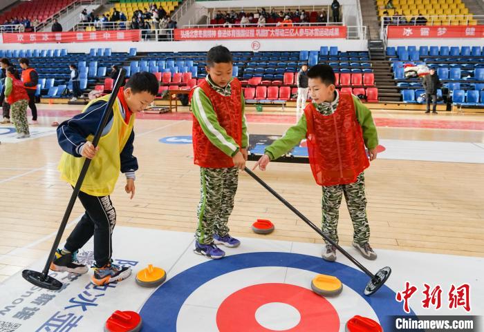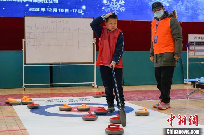 青海冰雪運動會賽場:冰壺少年顯身手