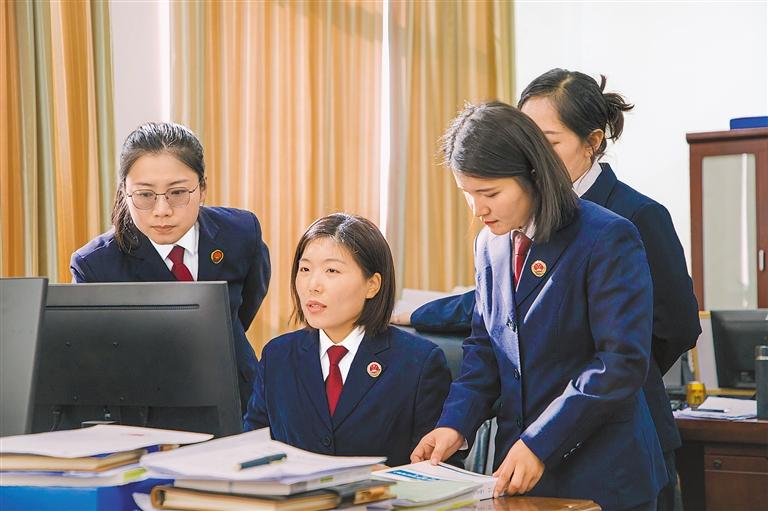 圖為席淑姣(左二)積極發(fā)揮傳幫帶作用,向年輕同事傳授辦案經(jīng)驗。圖/文 記者 王杰學 通訊員 張超