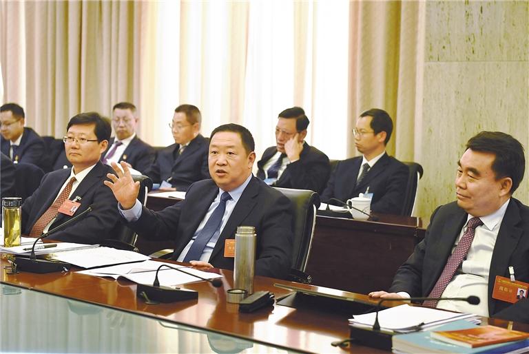 審議現(xiàn)場氣氛熱烈,代表們結(jié)合崗位實際暢所欲言,講成就、談體會,聚共識、建諍言。劉江認(rèn)真聽取發(fā)言,不時與大家互動交流。