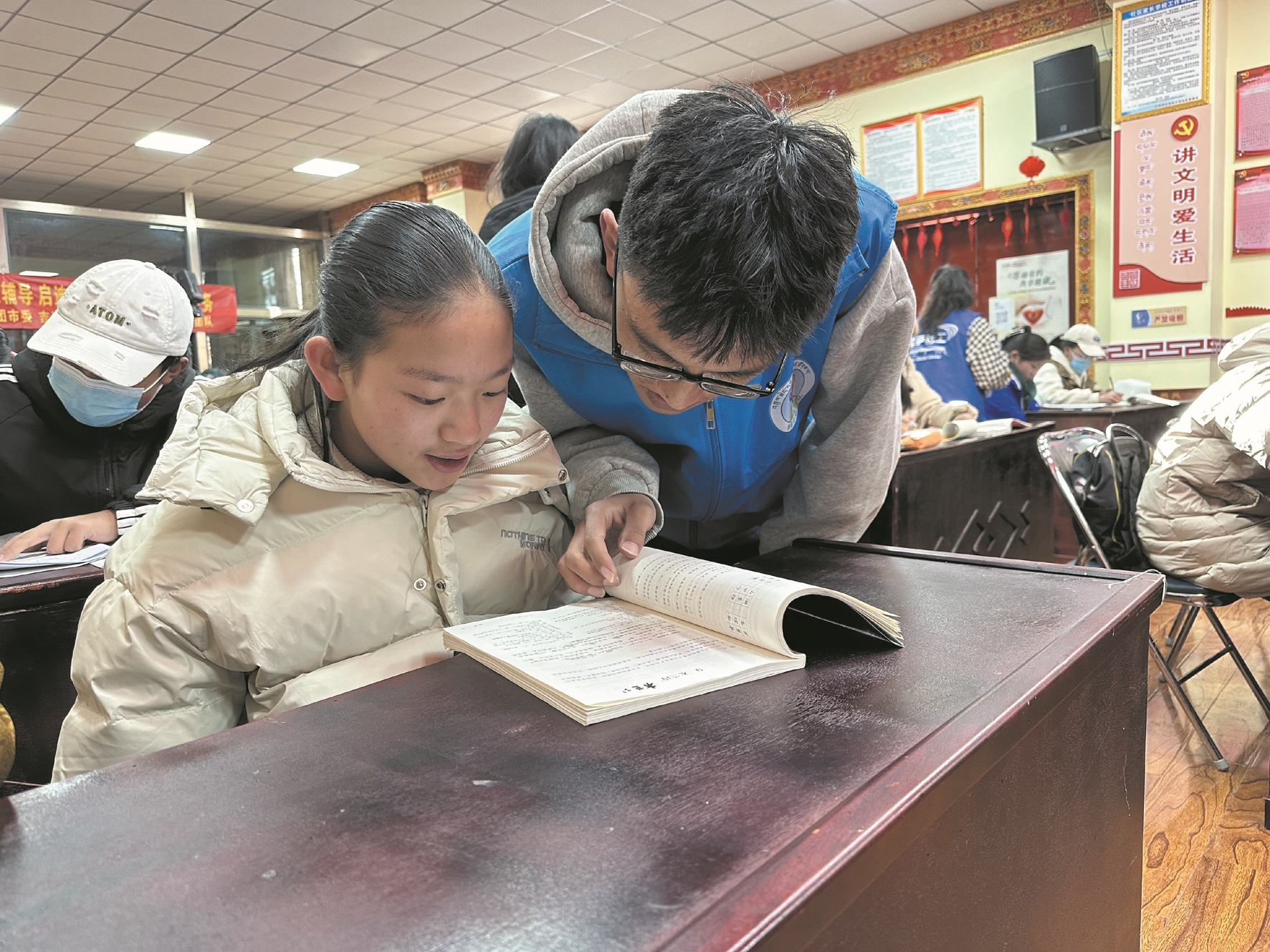 寒假期間,不少家長(zhǎng)因?yàn)闆]辦法輔導(dǎo)孩子的日常學(xué)習(xí)而感到苦惱。前不久,吉崩崗街道聯(lián)合市團(tuán)委、摯善公益團(tuán)隊(duì)在熱木其社區(qū)居委會(huì)里設(shè)立了一個(gè)臨時(shí)“教室”,為轄區(qū)孩子們提供為期一個(gè)月的課業(yè)輔導(dǎo)志愿服務(wù)?,F(xiàn)場(chǎng),返鄉(xiāng)大學(xué)生志愿者們變身為一名名“小老師”,耐心幫助孩子們解決學(xué)習(xí)難題,輔導(dǎo)的課業(yè)涵蓋了小學(xué)、初中的所有科目。除了教作業(yè),志愿者還組織孩子們開展演講比賽、書法比賽等活動(dòng),充實(shí)了孩子們的假期生活。