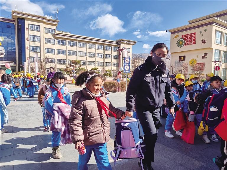 站在學(xué)校門口,等待孩子的家長(zhǎng)央金感觸頗深,她告訴記者,每次開(kāi)學(xué)前、開(kāi)學(xué)時(shí)、開(kāi)學(xué)后,都能看到民警們忙碌的身影。為學(xué)校家長(zhǎng)提供幫助,為學(xué)生消除安全隱患,營(yíng)造了安全、和諧、文明的校園環(huán)境,十分感謝他們?!敖裉靾?bào)到啦,我們看到警察叔叔和阿姨就覺(jué)得很安心、很開(kāi)心。”實(shí)驗(yàn)小學(xué)3年級(jí)10班學(xué)生白瑪娜薩說(shuō)。