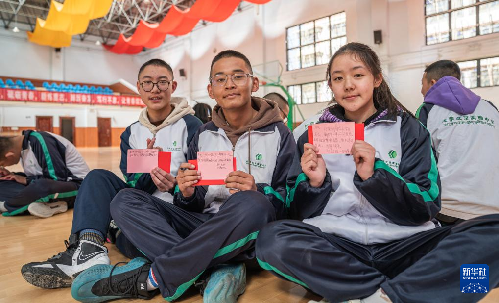 3月1日,拉薩北京實驗中學(xué)的學(xué)生展示寫好的新學(xué)期愿望。新華社記者 丁增尼達(dá) 攝