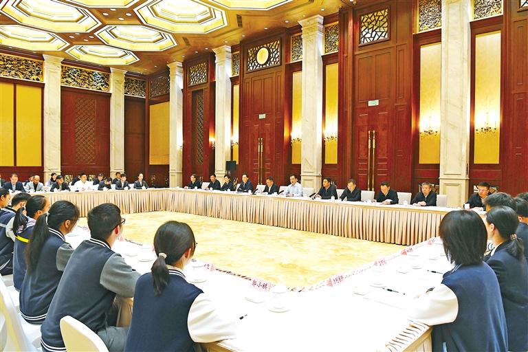 5月10日至11日,西藏自治區(qū)黨政代表團赴上海學習考察。這是王君正看望西藏班師生、西藏籍高校畢業(yè)生就業(yè)代表,聽取他們在上海學習、工作情況。 記者 李洲 攝