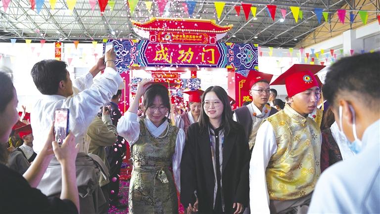 活動現場,每一位即將畢業(yè)的學生都要穿過象征著“成人、成才、成功”的三道門。家長代表手捧鮮花,不停地叮囑著孩子;老師們眼眶濕潤,看著即將離校的學生,充滿了不舍和期待。此刻,千言萬語涌入心間,匯成美好的期盼。