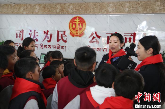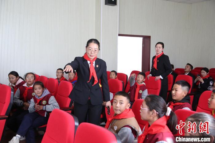 圖為瓊結(jié)縣人民法院院長(zhǎng)解松娟正在為學(xué)生們講解庭審過(guò)程。倫珠澤仁攝