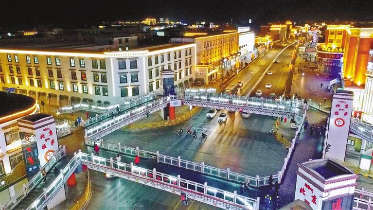 北京市第九批援藏工作隊(duì)投入1743.4萬元建設(shè)的、拉薩首座配置電梯的城市人行天橋—“連心橋”。 圖/文 西藏日報(bào)記者 盧文靜 劉斯宇 裴聰 北京日報(bào)記者 王琪鵬