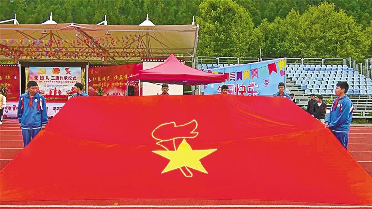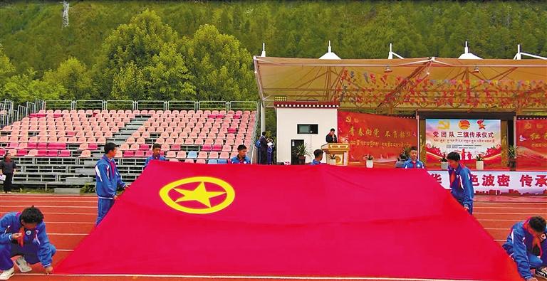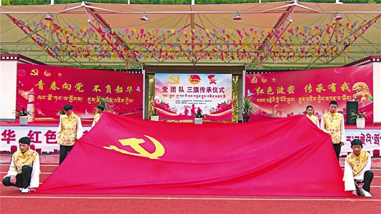 黨團(tuán)隊(duì)三旗傳承儀式現(xiàn)場。記者 胡文 通訊員 旦珍 攝