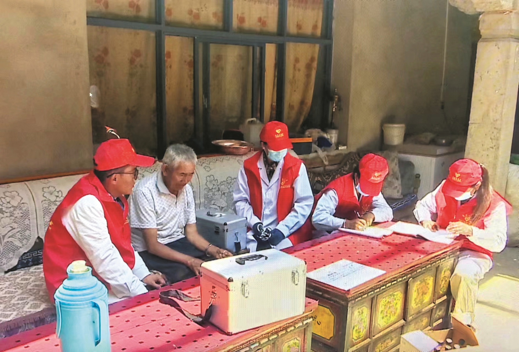 圖為醫(yī)務(wù)人員仔細(xì)記錄群眾身體健康情況。 拉薩融媒記者 吳 敏攝