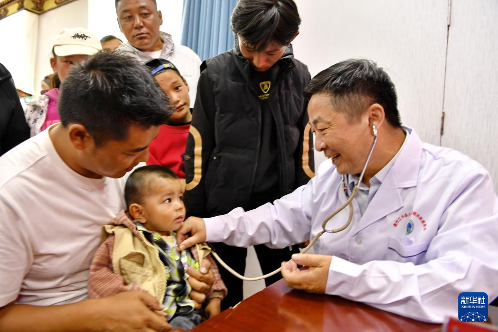 7月23日,南京醫(yī)科大學(xué)附屬兒童醫(yī)院心胸外科主任戚繼榮(左)在墨竹工卡縣為兒童體檢。 新華社記者 張汝鋒 攝