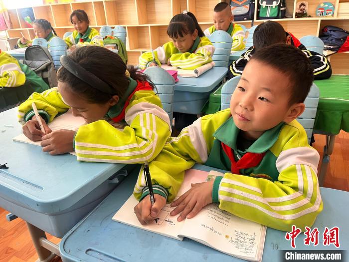 與此同時(shí),四年級2班的漢族學(xué)生劉念恩正在上藏語文課,他抄寫有些慢,同桌的女生立刻用筆幫他找到對照位置?!拔覀儼嘀挥形乙粋€(gè)漢族,我也要上藏語文課,同學(xué)們和我關(guān)系非常好,我們經(jīng)常一起踢足球。”劉念恩說。
