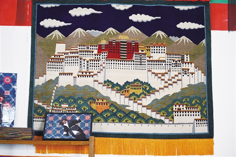 在藏毯廠陳列廳里,懸掛著一幅以布達(dá)拉宮為題材的藏毯。“眼前的這幅藏毯已經(jīng)懸掛十年,沒有任何變形?!笨ν邎?jiān)藏毯廠工作人員彭志紅說,可見手工藏毯的質(zhì)量絕佳。
