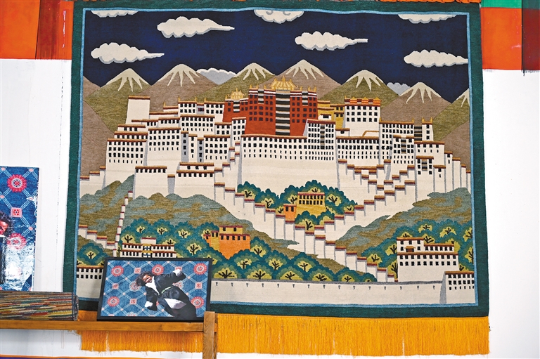 圖為喀瓦堅(jiān)藏毯廠生產(chǎn)的以“布達(dá)拉宮”為題材的藏毯?!∮浾摺≮w越 攝