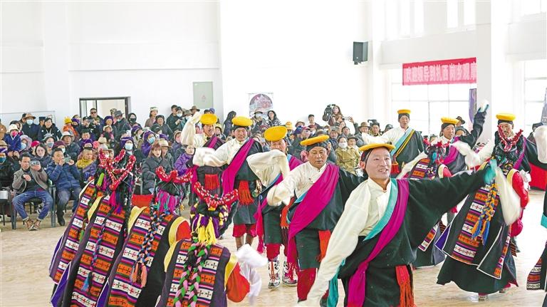 “如今,這支隊伍已發(fā)展到20多名成員,都是當(dāng)?shù)厝罕?。藝術(shù)隊經(jīng)常受邀參加各種大小晚會、重要節(jié)日演出和赴區(qū)內(nèi)外非遺展演等,其影響力和傳播力不斷提升,特別是甲瑪諧欽《和親路》受到廣泛歡迎?!奔赚斷l(xiāng)工作人員德吉卓嘎說。