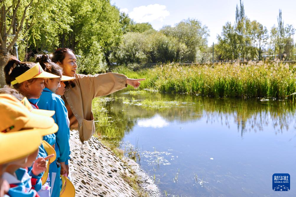 8月15日,拉魯濕地國(guó)家級(jí)自然保護(hù)區(qū)管理局的工作人員為小學(xué)生們進(jìn)行動(dòng)植物科普。新華社記者 張汝鋒 攝