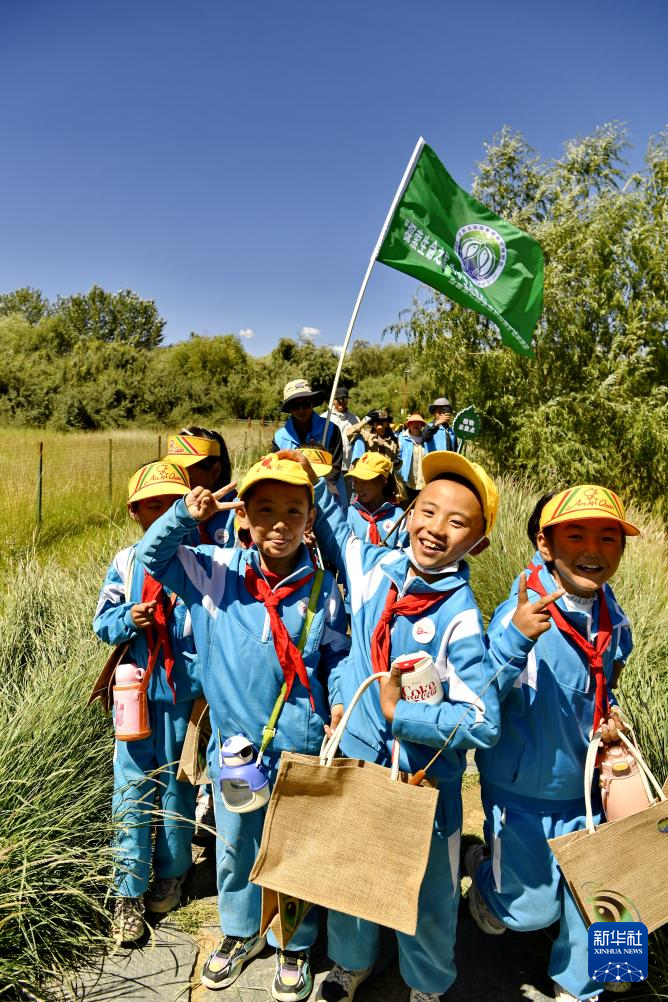 8月15日,拉魯小學(xué)的學(xué)生們?cè)诶敐竦貒?guó)家級(jí)自然保護(hù)區(qū)開展生態(tài)科普研學(xué)活動(dòng)。新華社記者 張汝鋒 攝 ??