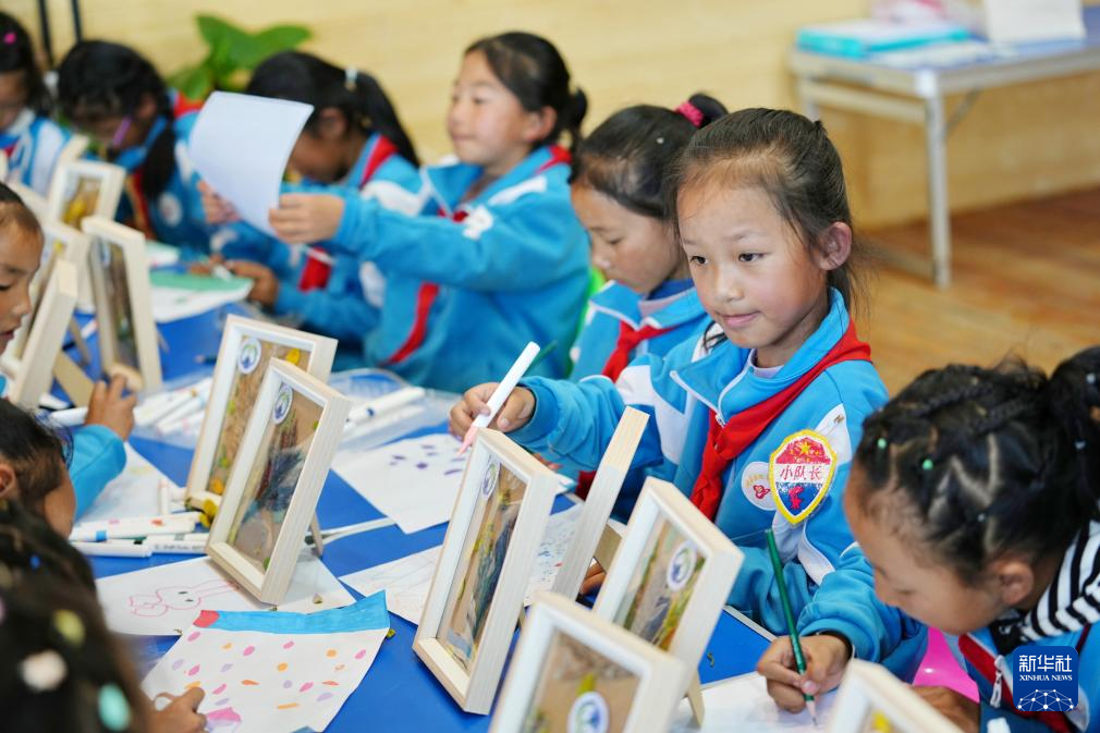 8月15日,拉魯小學(xué)的學(xué)生在拉魯濕地國(guó)家級(jí)自然保護(hù)區(qū)管理局科普小教室里進(jìn)行生態(tài)主題繪畫。新華社記者 張汝鋒 攝 ??