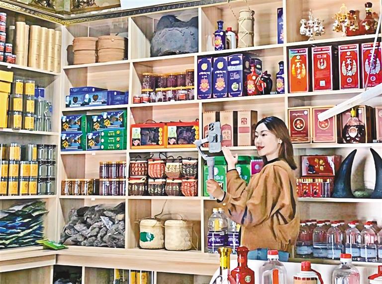 就在記者來到扎日鄉(xiāng)采訪的前一天,次仁康珠在家里的“扎日特產(chǎn)店”專門開設了一個房間并精心布置,開始嘗試在網(wǎng)絡平臺直播帶貨。