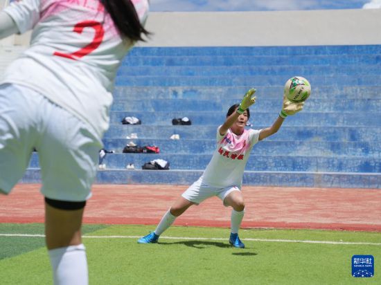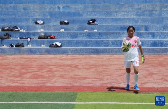 在西藏日喀則市上海實(shí)驗(yàn)學(xué)校,“珠峰雪鷹”女子足球隊(duì)守門員邊普在操場上訓(xùn)練(9月3日攝)。新華社記者 丁汀 攝