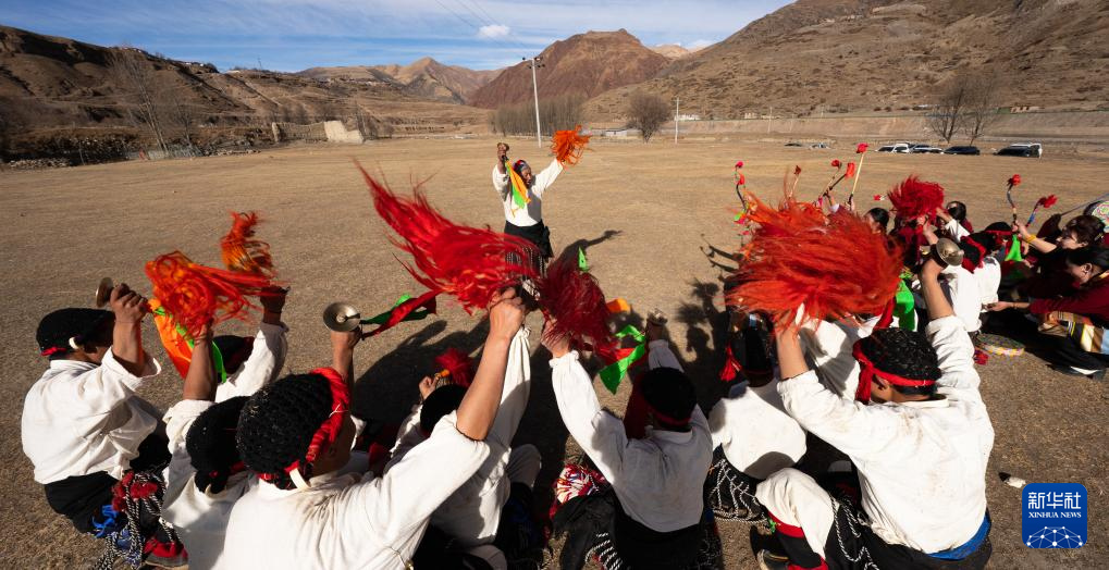 西藏昌都市丁青縣尺犢鎮(zhèn)烏巴村文藝演出隊(duì)在跳熱巴舞(1月5日攝)。新華社記者 丁增尼達(dá) 攝 ??